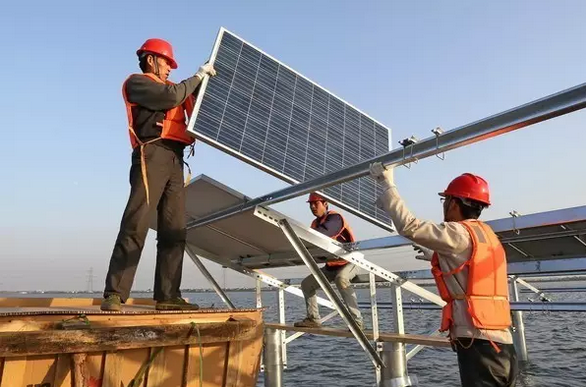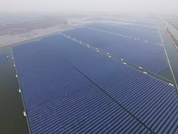 這項(xiàng)從2016年6月底進(jìn)場(chǎng)施工的浩瀚工程進(jìn)展“神速”。不到半年,一個(gè)“上可發(fā)電、下可養(yǎng)魚(yú)”的大型漁光互補(bǔ)光伏發(fā)電項(xiàng)目已基本完工。