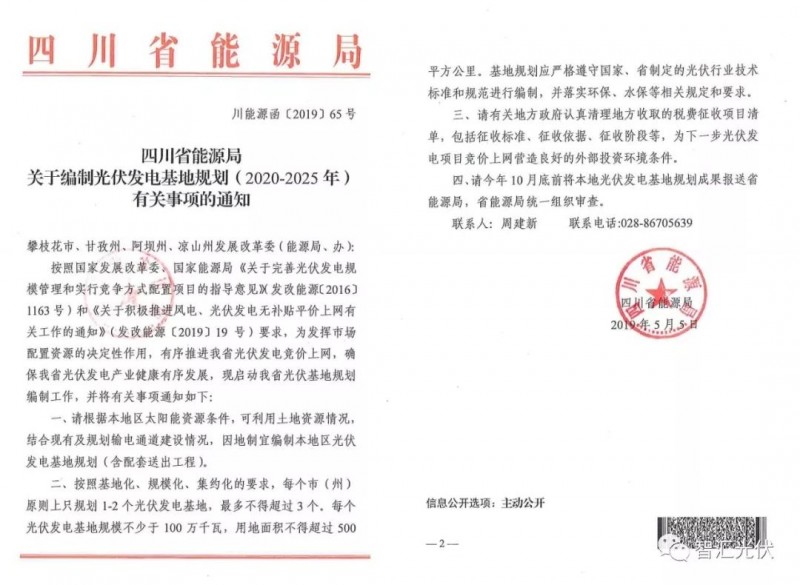 2019年7月,生態環境部批復了《雅中~江西±800kV特高壓直流輸電工程環境影響報告書》,項目主要新建±800千伏送端換流站,站址位于四川省涼山州。而早在2019年5月,四川省能源局已經著手在川西的四個州開展光伏基地的規劃,每個州安排1~3個基地,每個基地規模1GW以上,20GW以下(500平方公里折合20GW)。如此算來,四川省配套的光伏基地規模在4GW以上,甚至可以達到十幾吉瓦以上。