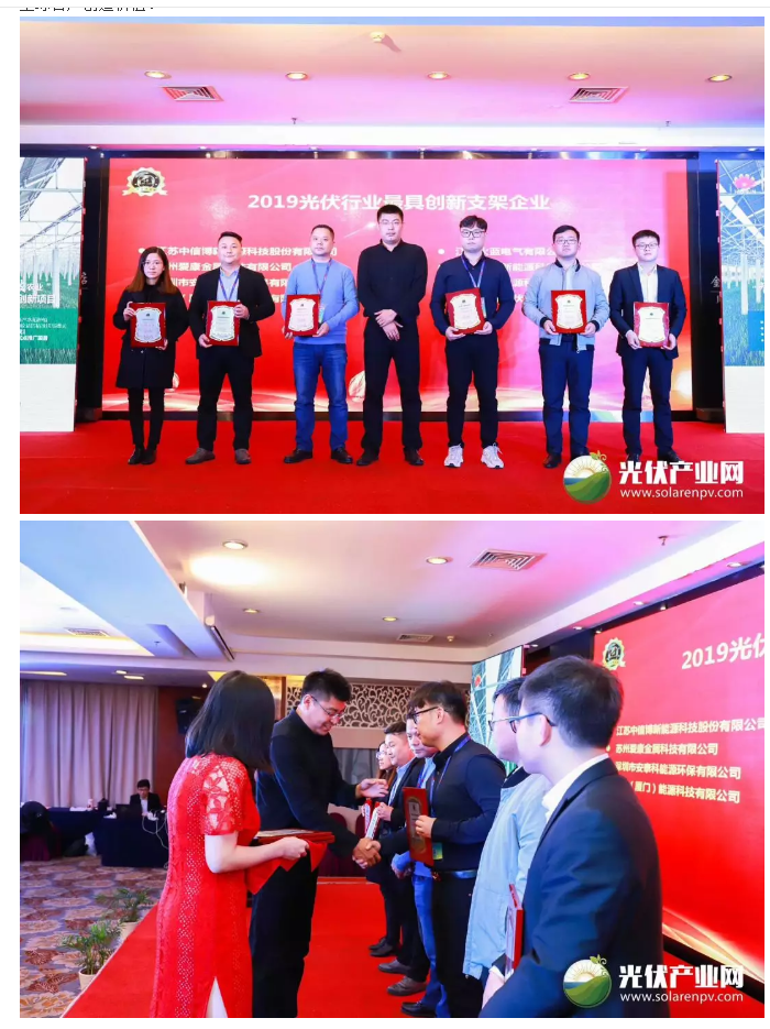 2019年11月27日,「PV TOP 50」2019光伏行業創新力企業50強榜單發布暨頒獎典禮(PV TOP 50光伏創新榜)在蘇州圓滿落下帷幕!卡思能源受邀出席,并榮獲“「PV TOP 50」2019光伏創新榜最具創新支架企業”稱號。此次獲獎是對卡思能源技術創新及產品研發能力的充分肯定。