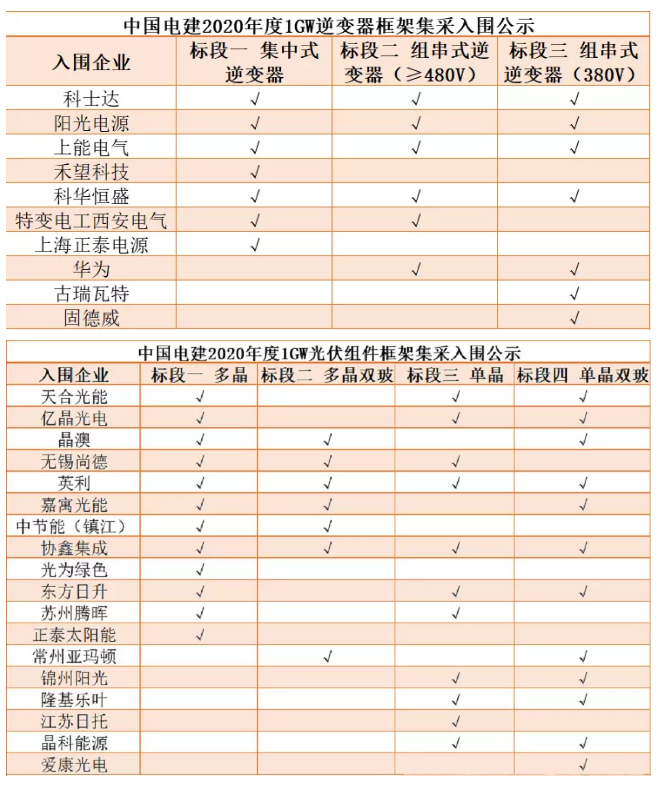 根據(jù)招標(biāo)公告,本次集采的光伏組件、逆變器為中國電建2020年預(yù)計裝機總量(包括自主投資建設(shè)項目和對外承攬的總承包項目),規(guī)模為1GW。