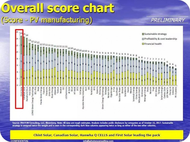此前,全球光伏咨詢與市場調研龍頭Photon Consulting,從現金流、經營效率(盈利與成本控制力)、長期發展戰略三個方面進行考量比較,發布了2017年全球光伏企業“鐵人三項”競爭力報告,浙江正泰新能源開發有限公司從全球范圍內的56家高知名度光伏企業中脫穎而出,以15分的高分再次蟬聯綜合排名第一,領跑太陽能光伏行業。