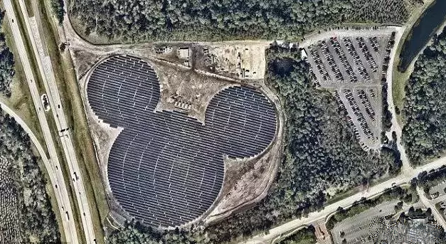 華特迪士尼以常在主題樂園周邊建米老鼠形狀的構造物而聞名,稱為“隱藏米奇”。此次的米老鼠形狀百萬光伏電站看似也是這種品牌戰略的一環。