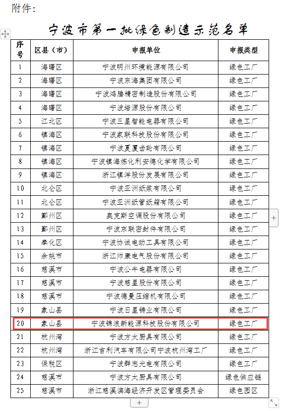 近日,寧波市經濟和信息化局公布第一批綠色制造名單,其中綠色工廠23家、綠色園區1個、綠色供應鏈1條。寧波錦浪新能源科技股份有限公司榜上有名,榮獲“綠色工廠”稱號,再次彰顯了錦浪綠色制造的水平和實力。據悉,象山縣僅有2家單位入選。