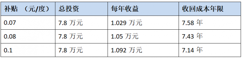 江蘇省是經濟強省,2019年分布式光伏安裝1.24GW,全國第三,戶用光伏也可以排在前四名,我們按每瓦每年發1.05度計算,安裝價格較高,安裝價格按每瓦3.9元計算,自用比例統一按20%計算,經計算綜合電價約為0.42元一度(0.391*0.8+0.5283*0.2)。這樣如果安裝一個20kW電站,投資7.8萬元,平均每年可發2.1萬度。
