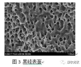 將材料表面加工成介于微米-納米級的微孔即可有效降低硅反射率從而提高短波的光吸收[1-5]。黑硅電池,核心是通過刻蝕技術,一方面在常規硅片表面制絨的基礎上形成納米級的小絨面,從而加大陷光的效果降低反射率,增加對光的吸收;另一方面,通過二次刻蝕來降低表面復合,從而將常規電池的轉換效率絕對值提高。
