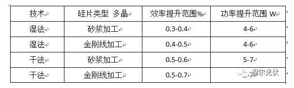 根據界面態缺陷導致的載流子復合,我們認為濕法黑硅在硅片背面拋光,例如通過刻蝕深度及少子壽命優化,然后進行氧化鋁及氮化硅的復合鈍化,其與干法相比的效率差異會縮小。隨著黑硅工藝的推廣,金剛線切多晶硅片的比例將逐步增加。