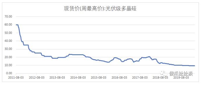 這是2011年至今的硅料價格,當(dāng)保利協(xié)鑫的產(chǎn)能釋放完畢,硅料價格從100USD跌到20USD。雖然后續(xù)通威大全在新疆建設(shè)更有競爭力的硅料,但是硅料價格在過去8年只是跌到9.5USD,倒逼瓦克和OCI退出,硅料價格存在企穩(wěn)上漲的可能性。通威、大全和保利協(xié)鑫等幾家廠商的高市占率控制全球光伏硅料的定價權(quán)。