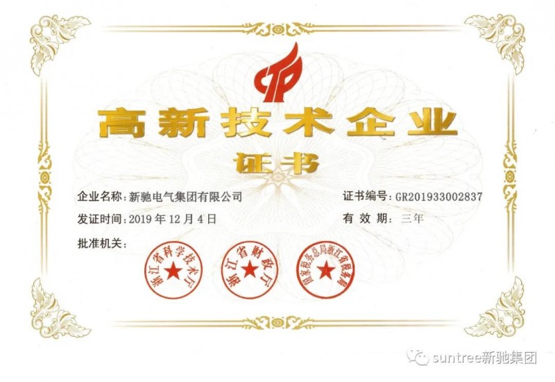 新馳電氣集團(tuán)有限公司于2019年底獲得‘高新技術(shù)企業(yè)’稱號(hào)。