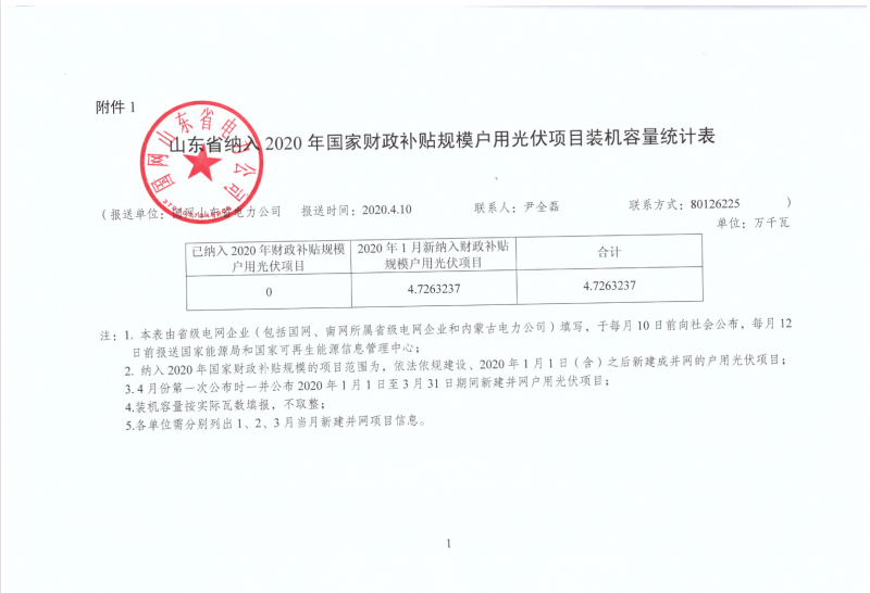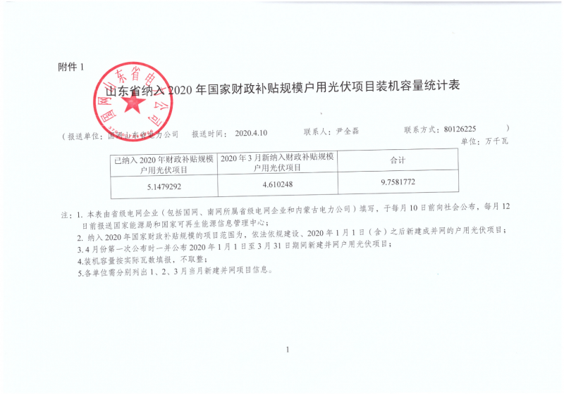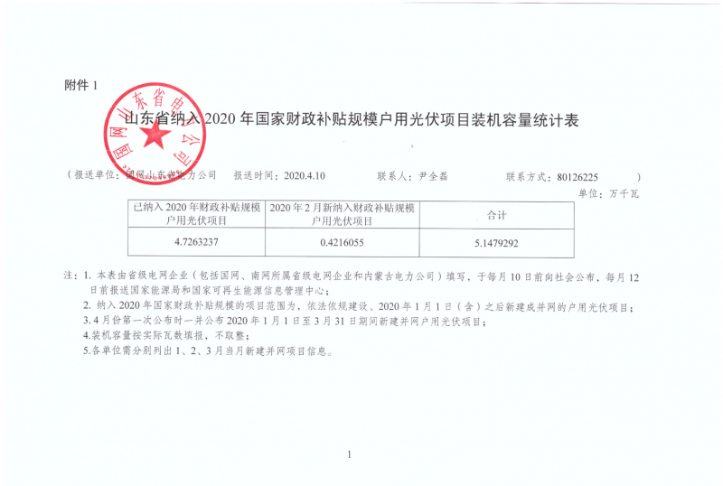 在發(fā)布《山東省納入2020年國家財(cái)政補(bǔ)貼規(guī)模戶用光伏項(xiàng)目裝機(jī)容量統(tǒng)計(jì)表》時(shí),電力公司明確,納入2020年國家財(cái)政補(bǔ)貼規(guī)模的項(xiàng)目范圍為,依法依規(guī)建設(shè)、2020年1月1日(含)之后新建成并網(wǎng)的戶用光伏項(xiàng)目。