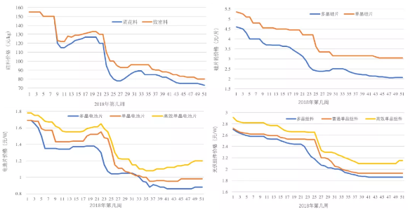 關于光伏產品價格急劇下降,離大家最近的一次記憶就是2018年531之后。當時,各環節光伏產品出現了急劇的下降,短期內降幅甚至到40%。