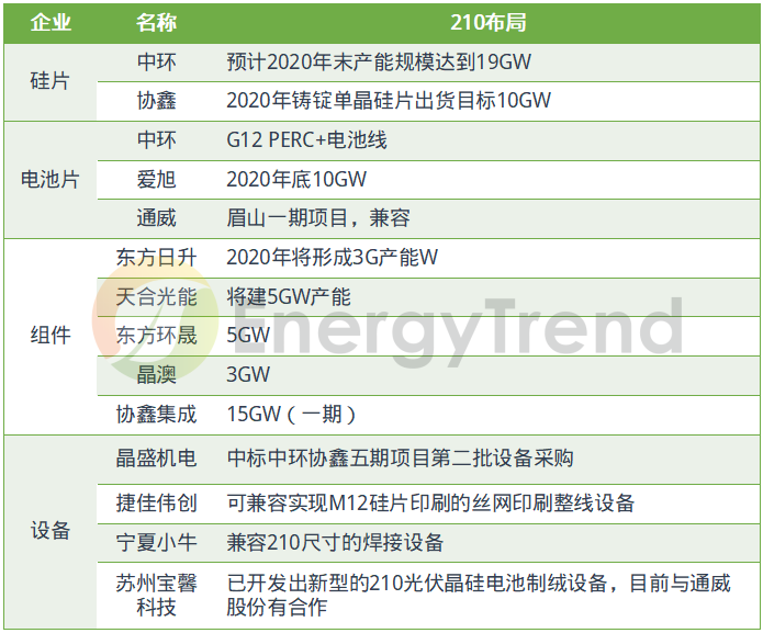 此外,中環旗下子公司東方環晟亦緊跟步伐,布局了5GW的210mm組件產能;晶澳3GW組件產能也已具備兼容210mm大硅片能力。