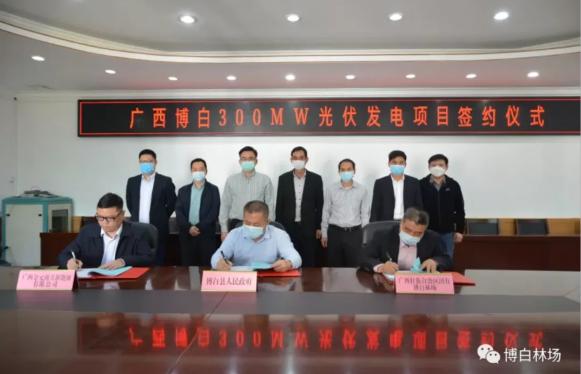 2019年12月12日,為加快推進32億元新能源項目建設(shè)進度,廣西金元到博白林場實地考察,對博白林場所選的項目地塊表示滿意,并對將光伏發(fā)電項目建設(shè)成為集發(fā)電、旅游、光伏科普和藥用花卉科普為一體表示支持。光伏項目即為博白項目。
