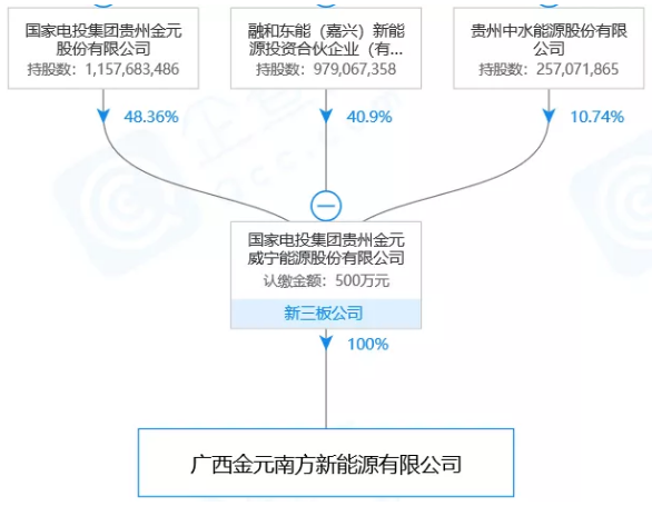 企查查顯示,廣西金元由國家電投集團貴州金元威寧能源股份有限公司(以下簡稱“威寧能源”)全資控股。威寧能源成立于2014年6月,是貴州省首家集光伏、水電、風電于一體的綜合型能源公司,是貴州省首家新能源公眾公司,隸屬于國家電投集團貴州金元股份有限公司(以下簡稱“貴州金元”)。