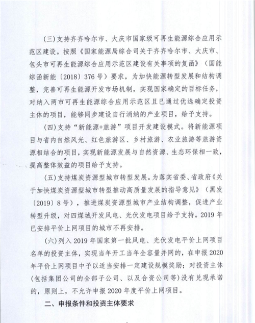 3、對納入齊齊哈爾及大慶可再生能源示范區(qū)的主體項目方且能夠同步建設(shè)自行消納產(chǎn)業(yè)項目的;