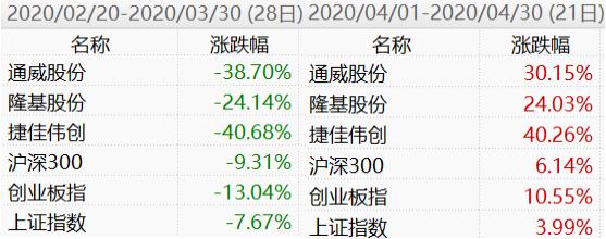通過下圖還可以清晰的看到,在整個疫情期間,當系統性風險釋放的時候,光伏行業的高貝塔屬性非常明顯,下跌超過30%不在少數,而當4月份整個市場處于震蕩上漲的過程中,光伏行業龍頭隆基漲幅24%,通威漲幅30%,捷佳偉創漲幅40%,整體漲幅同樣驚人,遠超大盤指數。