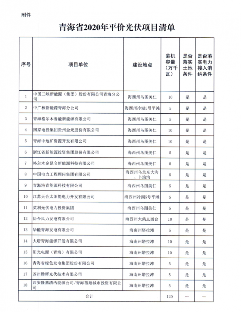 1.2GW!三峽新能源、國家電投、大唐、陽光電源、天合等入圍青海2020年平價光伏項目清單