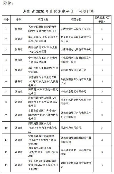 附件:湖南省2020年光伏發(fā)電平價上網(wǎng)項目表