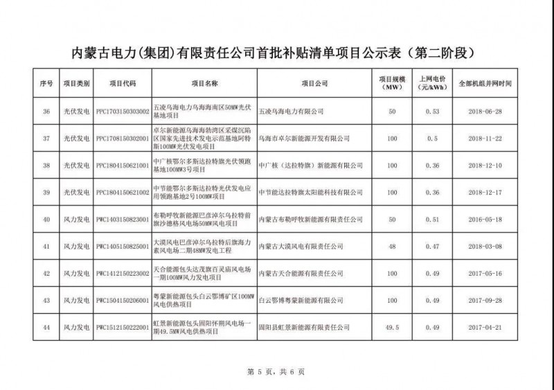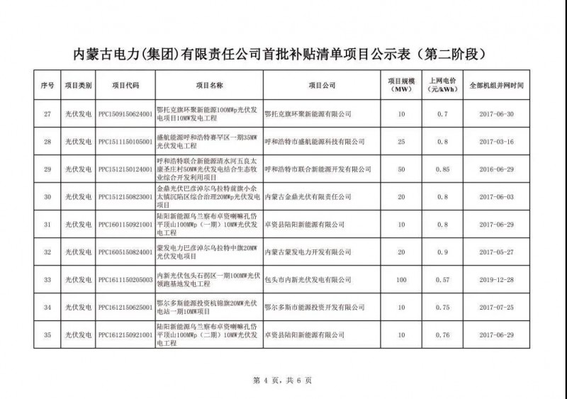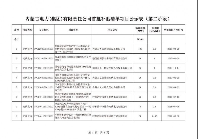 附件:內蒙古電力(集團)有限責任公司首批補貼清單項目公示表(第二階段)