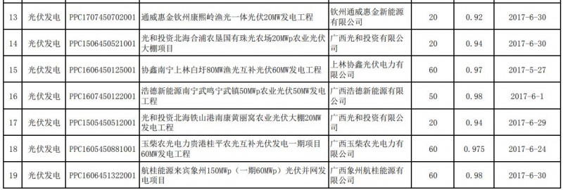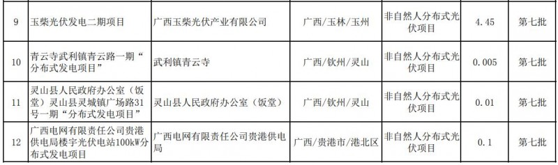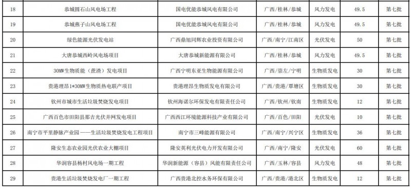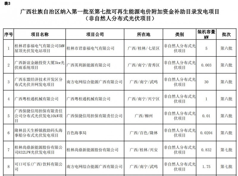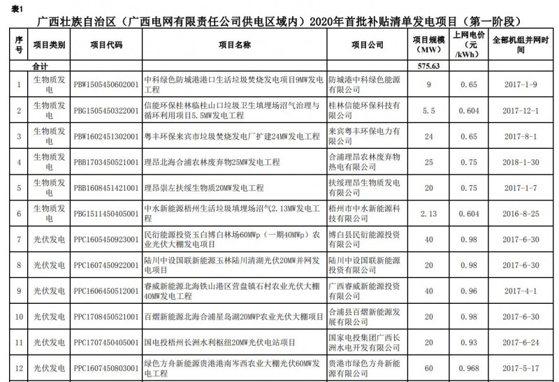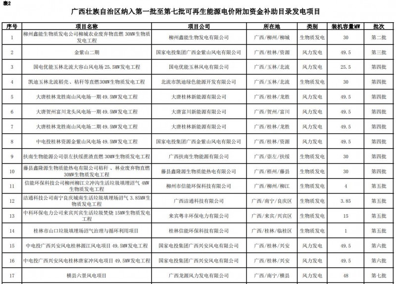 廣西壯族自治區(廣西電網有限責任公司供電區域內)首批可再生能源發電項目補貼清單(第一階段)