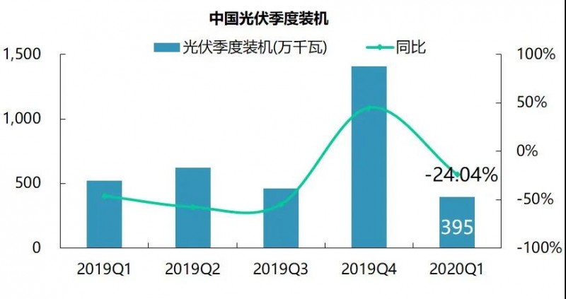 2020年一季度,國內(nèi)多晶硅產(chǎn)量達10.5萬噸,同比增長29.9%;國內(nèi)組件產(chǎn)量達23.4GW,同比增長17%。頭部企業(yè)在春節(jié)及疫情期間未停工,產(chǎn)銷達到平衡。根據(jù)國家能源局發(fā)布的公開數(shù)據(jù),1-3月我國新增光伏裝機3.95GW,同比降低24.04%。其中集中式光伏新增裝機2.23GW,分布式新增裝機1.72GW。