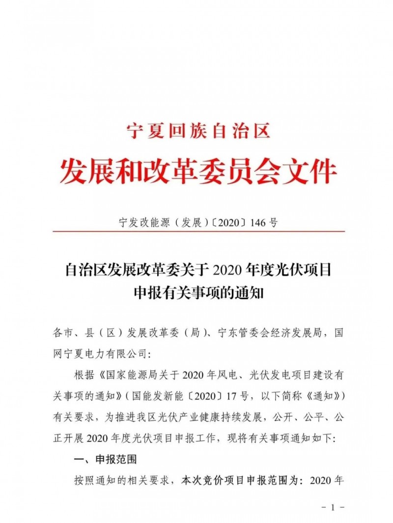 5月31日截止!寧夏啟動2020年光伏項目申報工作 全部消納空間用于競價