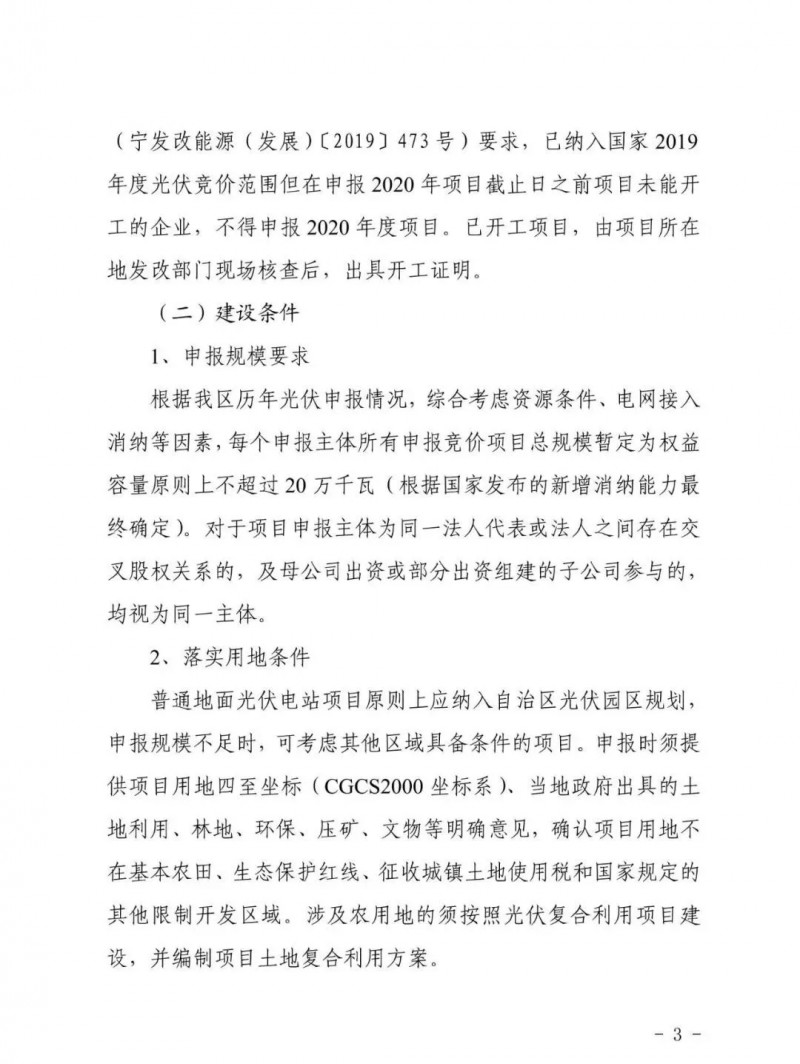 此外,已納入2019年度光伏競價范圍但未在2020年5月31日前開工的企業,不得申報2020年度項目,原則上一個申報主體申請容量不超過200MW。5月31日前,需報送相關資料至發改委。