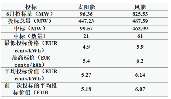 德國公布6月太陽能、風(fēng)能招標結(jié)果