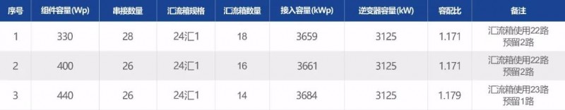 1.針對一類資源區,根據統計,清晨溫度可按照-20℃考慮,此時330組件每個支串連接的數量為28塊, 400組件每個支串連接數量為26塊,440組件每個支串連接數量為26塊,計算表單見下表: