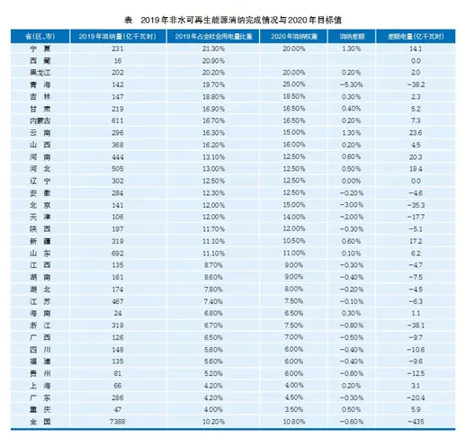 2020年5月6日國家能源局印發的《關于2019年度全國可再生能源電力發展監測評價的通報》,對2019年各省可再生能源電力消納情況進行了通報,從非水可再生能源電力消納量占全社會用電量比重的情況來看,全國9省(區)占比超過15%,其中寧夏、西藏、黑龍江、青海和吉林占比超過18%。
