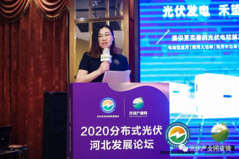 河北省光伏新能源商會會長徐麗英發言道:“在創新、協調、綠色、開放、共享的新發展理念下,河北持續深化光伏改革,全面加強征信體系,具有良好的發展勢頭。新能源產品,大量應用于農業、工業、以及日常生活中,光伏發電、風力發電等新能源、新模式,可謂進入了尋常百姓家。”