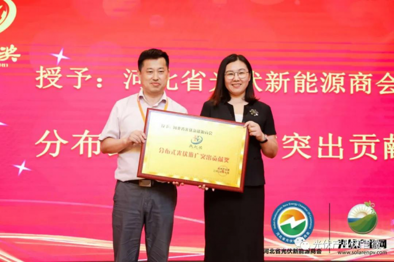 同時,光伏產業網的總經理張健為河北省光伏新能源商會頒發了分布式光伏推廣突出貢獻獎。