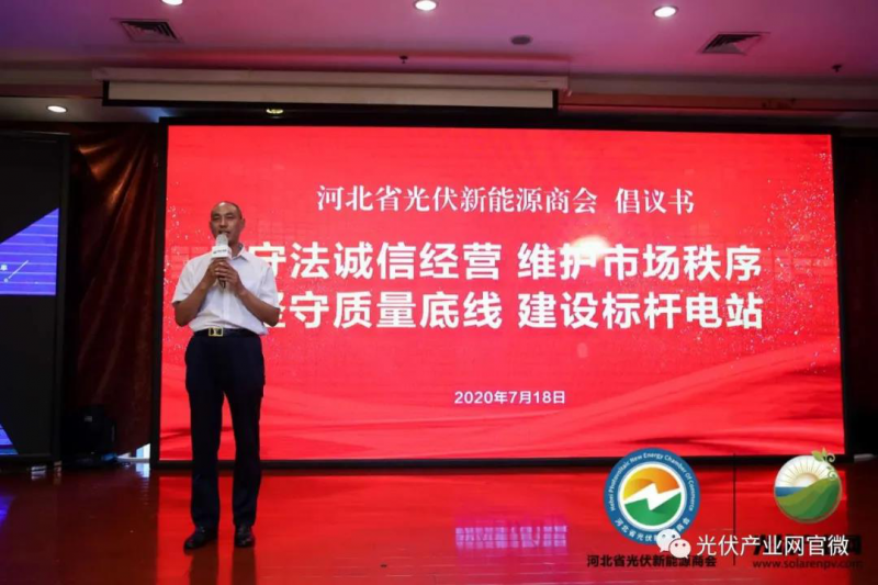 頒獎結束后,河北省光伏新能源商會發布倡議書:《守法誠信經營 維護市場秩序 堅守質量底線 建設標桿電站》。