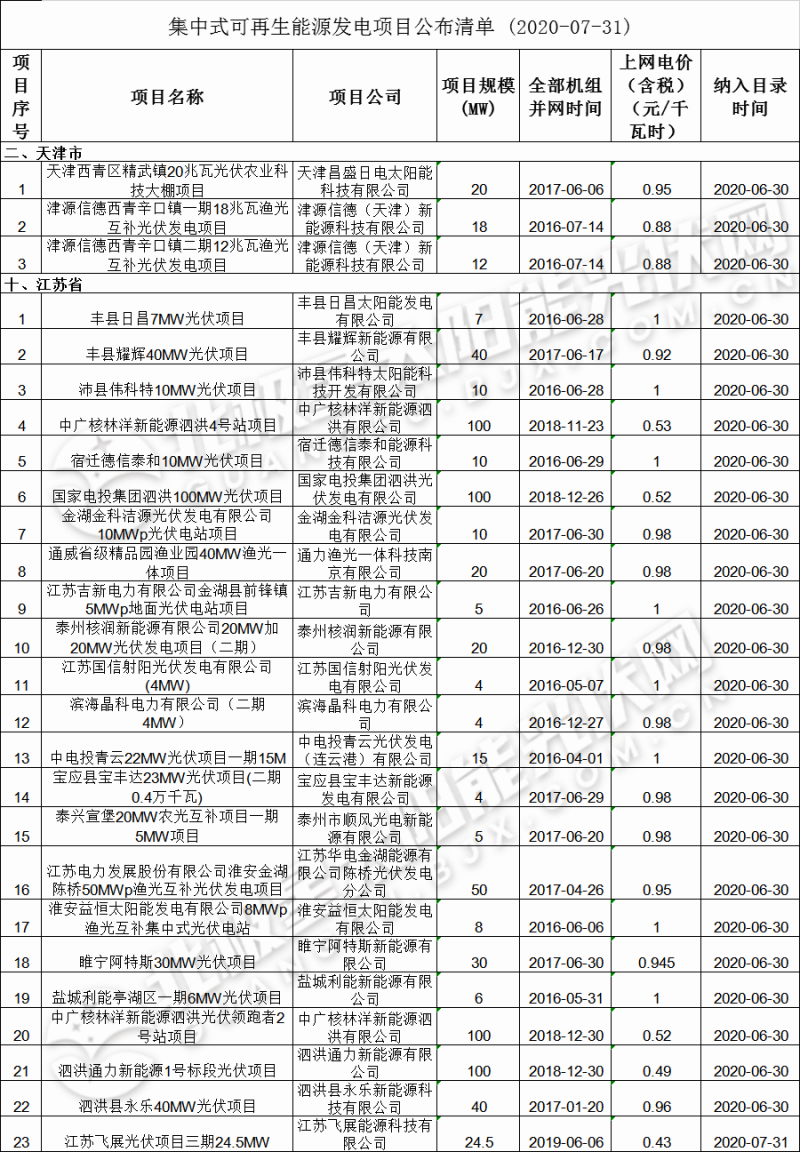 關于公布2020年第二批可再生能源發電補貼項目清單的公告