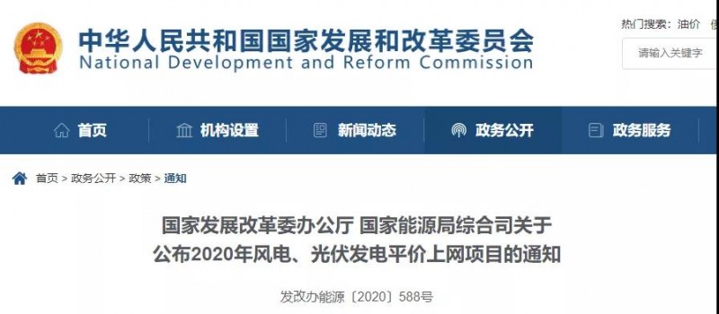 根據(jù)《國(guó)家發(fā)展改革委 國(guó)家能源局關(guān)于積極推進(jìn)風(fēng)電、光伏發(fā)電無(wú)補(bǔ)貼平價(jià)上網(wǎng)有關(guān)工作的通知》(發(fā)改能源〔2019〕19號(hào))、《關(guān)于2020年風(fēng)電、光伏發(fā)電項(xiàng)目建設(shè)有關(guān)事項(xiàng)的通知》(國(guó)能發(fā)新能〔2020〕17號(hào))要求,結(jié)合各省級(jí)能源主管部門(mén)報(bào)送信息,2020年風(fēng)電平價(jià)上網(wǎng)項(xiàng)目裝機(jī)規(guī)模1139.67萬(wàn)千瓦、光伏發(fā)電平價(jià)上網(wǎng)項(xiàng)目裝機(jī)規(guī)模3305.06萬(wàn)千瓦,現(xiàn)予公布。