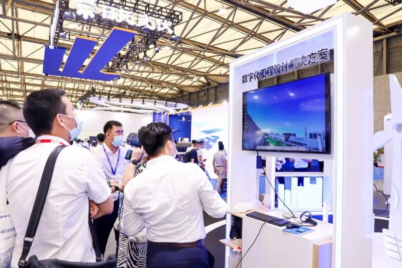 展會現(xiàn)場,通過VR設(shè)備展示數(shù)字化設(shè)計平臺在風(fēng)電場、光伏電站、升壓站等場景下的數(shù)字化三維建模及沉浸式效果,吸引了眾多參觀者的目光。