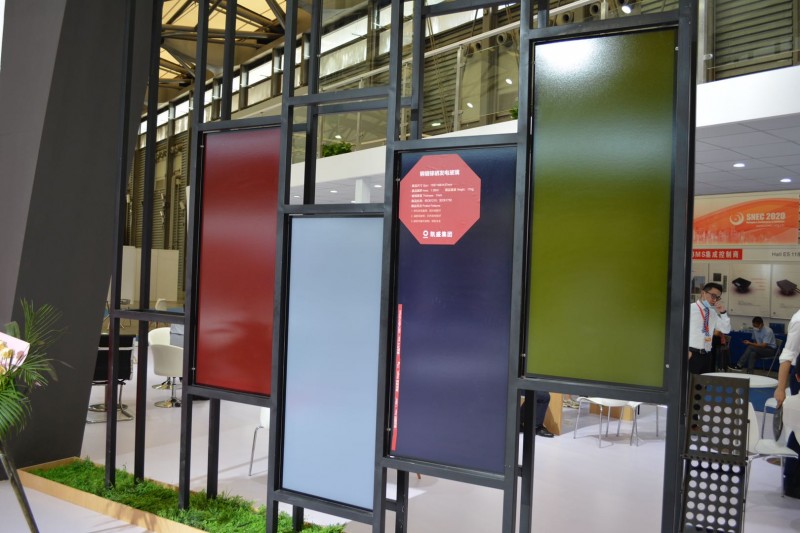 凱盛集團在本屆展會上重點展示了新能源、新材料等業務平臺的技術和產品。中建材浚鑫有限公司攜帶單晶硅太陽能組件Jeniüs X 超高效單晶系列、Jeniüs Pro高效單面系列、Jethrü Dü Pro高效雙面系列參展;凱盛光伏材料有限公司此次展出產品為最新彩色銅銦鎵硒高轉換率太陽能組件,穩居世界一流水平,可廣泛適用于光伏建筑一體化(BIPV)、戶用發電、智慧農業、新能源汽車、電子產品等領域;成都中建材光電材料有限公司推出的碲化鎘發電玻璃具有大尺寸、弱光性好、無邊框、可定制等優勢,吸引了眾多客戶的駐足交流;安徽天柱綠色能源科技有限公司展出的彩色幕墻產品顏色絢麗多彩,顏色和尺寸可定制,單位面積功率達到160瓦每平米,主要應用于建筑一體化BIPV和綠色交通等領域;中國建材桐城新能源材料有限公司推出了2.0mm半鋼化雙層鍍膜光伏玻璃和2.0mm鍍釉半鋼化光伏玻璃,這也是首次將這兩種產品亮相光伏展;中建材(宜興)新能源有限公司此次攜6.0世代超大板雙玻組件用封裝玻璃參展,組件尺寸為2407mm*1127mm*2.0mm,重量僅為13.55kg,能有效提升組件正面功率2%以上。