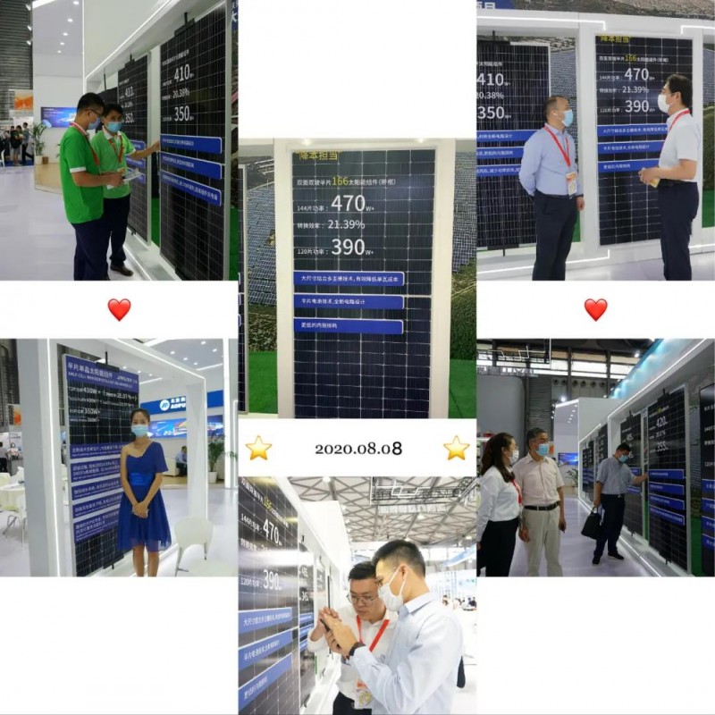 一直以來降本增效一直是光伏人孜孜不斷的追求,進入2020年以后,趨勢更甚,此次嘉寓光能攜“增效小能手”166雙面雙玻半片太陽能組件,9柵雙玻太陽能組件、9柵雙玻半片太陽能組件、9柵半片以及深受海外市場青睞的全黑系列等太陽能組件亮相展會,吸引聚集了眾多行業內外的賓客前來參觀商談。在展會的第一天也收獲頗豐,達成了意向訂單400兆。