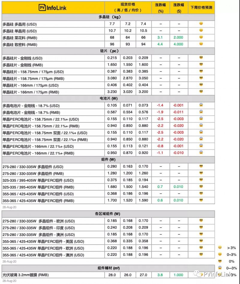 PV Infolink的現貨價格主參考超過100家廠商之資訊。主要取市場上最常成交的“眾數”資料作為均價(并非加權平均值)、但每周根據市場氛圍略有微調