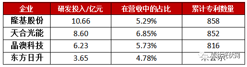高效產品與企業的研發投入密不可分。2020年上半年,隆基、天合、晶澳、東方日升的研發投入見下表: