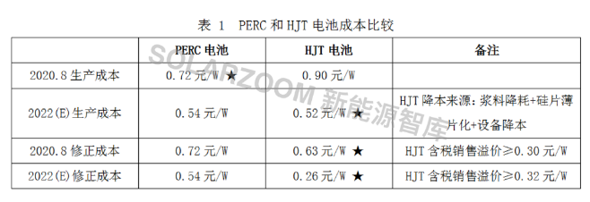 經(jīng)SOLARZOOM新能源智庫測算,PERC、HJT兩大技術(shù)相比: