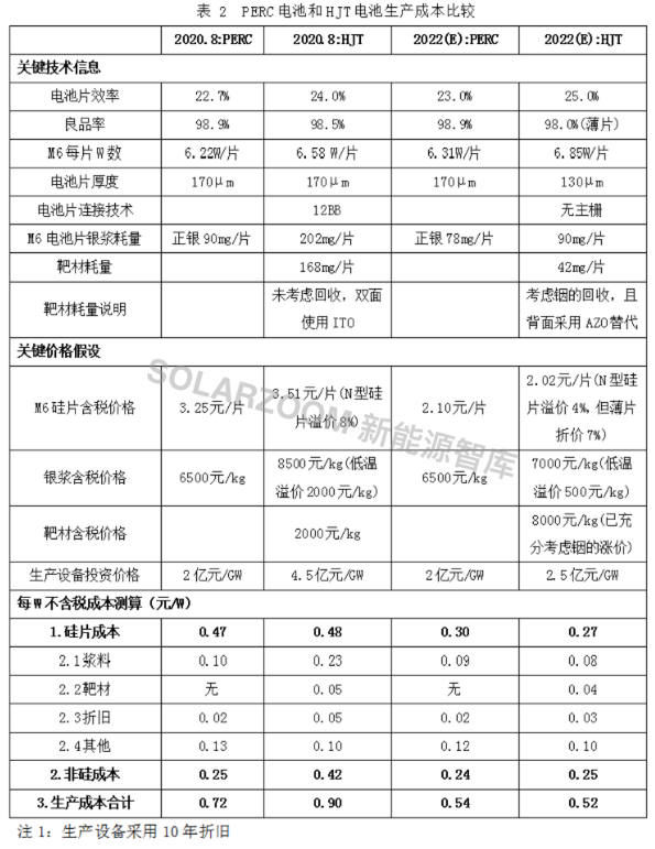 二、PERC電池與HJT電池的生產(chǎn)成本比較