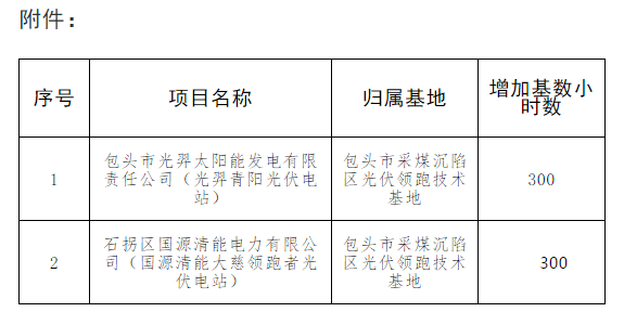 關(guān)于內(nèi)蒙古西部電網(wǎng)領(lǐng)跑者光伏項目增加基礎(chǔ)利用小時名單的公示(第二批)