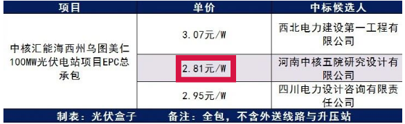 而在今年組件價格最為低迷的4月份,“中核匯能海西州烏圖美仁100MWp光伏電站項目EPC”曾出現2.81元/W的價格,雖然并未中標,但創造了國內光伏EPC價格歷史新低!