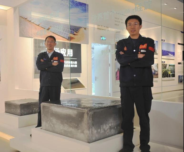 17年后的今天,集團黨委書記、總經理鄭小強,YGE副總經理、中共黨員王中河,來到英利館,再次和這塊240kg的多晶硅錠合影,“我們親眼見證了它的誕生,回想起來,仿佛是在昨天。”