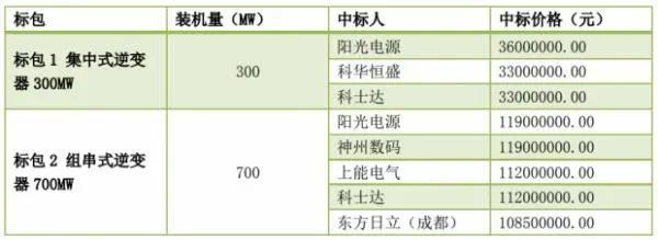 中標(biāo)結(jié)果顯示,標(biāo)包1的中標(biāo)人為陽光電源、科華恒盛、科士達(dá);標(biāo)包2的中標(biāo)人為陽光電源、神州數(shù)碼、上能電氣、科士達(dá)、東方日立,中標(biāo)總額為6.725億元。
