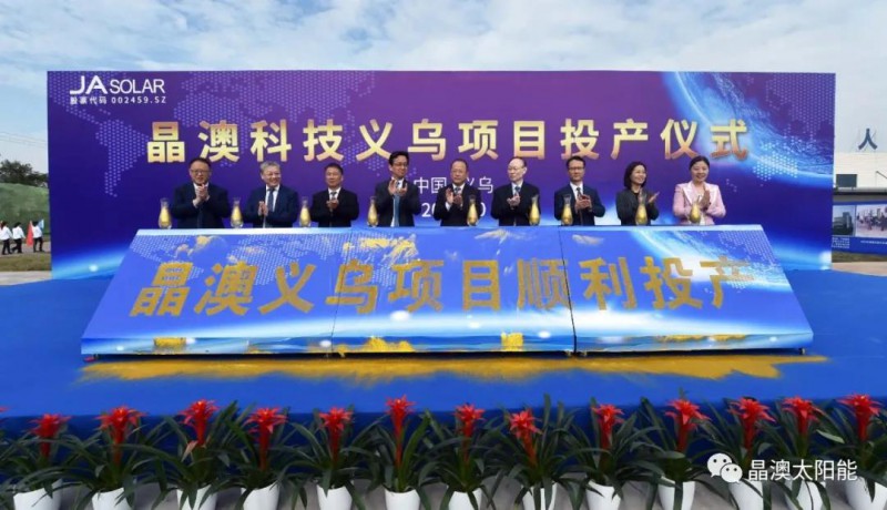 浙江省政府副秘書長董貴波宣布晶澳義烏基地正式投產。投產儀式上,晶澳科技與愛旭股份簽訂全面戰略合作協議。