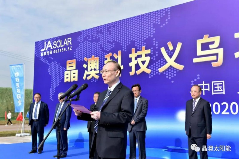 金華市委常委、義烏市委書記林毅在致辭中表示,晶澳義烏項目將帶動義烏人才科技集聚質的改變,帶動義烏產業結構轉型升級和高端制造集群發展。項目僅用142天,就建成全球最大的光伏智能單體車間,再次刷新了“當年簽約、當年開工、當年投產”的義烏項目建設速度。