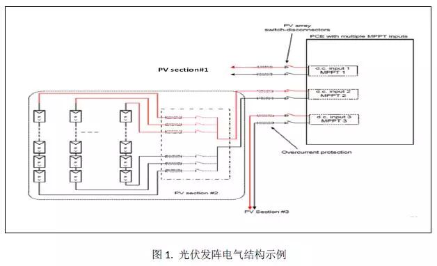 當下,業內討論最多的是雙面發電的增益率及組件和逆變器的容量配比,從安全和可靠性角度,還應考慮雙面發電組件IV特性變化及波動程度增加所導致的系統設計方面的調整。以圖1為例,依據IEC62548的要求,系統中所有設備和部件的耐流(含過流保護)等級不能低于1.25*Isc—array(注:依據IEC62548,一個跟蹤模塊視為一個獨方方陣,Isc—array為方陣短路電流)。依據上述要求,從系統設計角度,最應該討論和確定的是組件短路電流(Isc)的測試條件和方法。