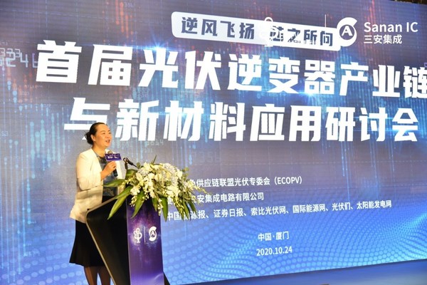 此次研討會由中國綠色供應鏈聯(lián)盟光伏專委會主辦,廈門市三安集成電路有限公司承辦。出席本次研討會的嘉賓包括:工業(yè)和信息化部電子信息司副司長楊旭東,工業(yè)和信息化部電子信息司電子基礎處金磊,工業(yè)和信息化部國際經(jīng)濟技術合作中心主任、中國綠色供應鏈聯(lián)盟副理事長兼秘書長鄭紅,中國綠色供應鏈聯(lián)盟光伏專委會主任沈輝、秘書長呂芳,中國能源研究會常務理事李俊峰,工業(yè)和信息化部國際經(jīng)濟技術合作中心能源資源環(huán)境研究所所長毛濤等等行業(yè)專家、研究機構、發(fā)電公司、光伏逆變器企業(yè)、媒體的近百位嘉賓蒞臨。原國務院參事、中國可再生能源學會第七、八屆理事長石定寰通過視頻的方式向本次研討會的召開送上賀詞,提出對光伏逆變器產(chǎn)業(yè)鏈的期許。