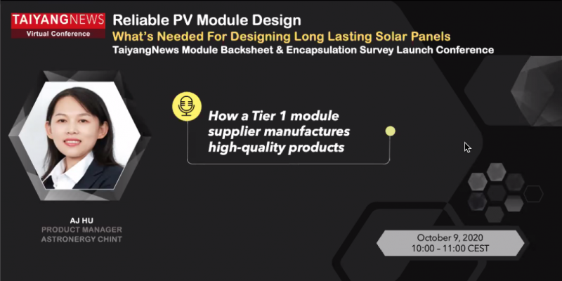 正泰新能源晶硅制造事業(yè)部產(chǎn)品管理胡豐華詳細(xì)分享正泰組件的可靠性控制。光伏行業(yè)的技術(shù)進(jìn)步以及市場(chǎng)對(duì)高效太陽(yáng)能電池、組件的追求不斷推動(dòng)產(chǎn)業(yè)快速發(fā)展,高效電池、高功率組件、高可靠度、高速智能制造、綠色光伏等已是行業(yè)趨勢(shì),在組件技術(shù)上,大尺寸硅片已成熱點(diǎn)。十余年來(lái),正泰新能源持續(xù)鉆研光伏前沿技術(shù),歷經(jīng)數(shù)代技術(shù)更迭,2020年推出全新ASTRO5系列組件,運(yùn)用大尺寸硅片、半片、MBB等高效技術(shù)造就高功率、高效率、高兼容性、高品質(zhì)、低BOS和LCOE的核心優(yōu)勢(shì),ASTRO5系列72版型功率最高可達(dá)550W,78版型功率最高可達(dá)595W。